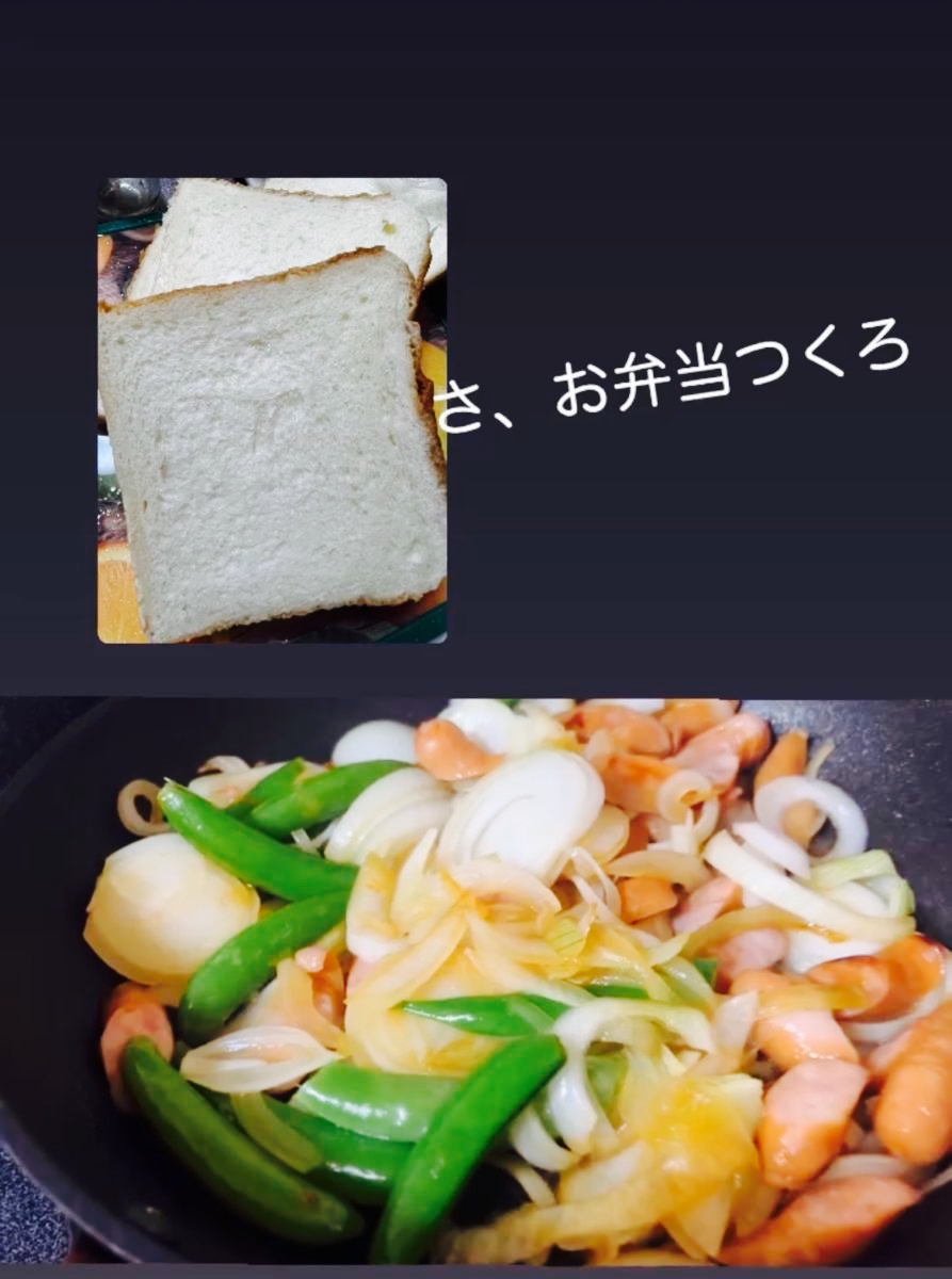 パンの具はウインナー、玉ねぎ、スナップえんどうにしました。