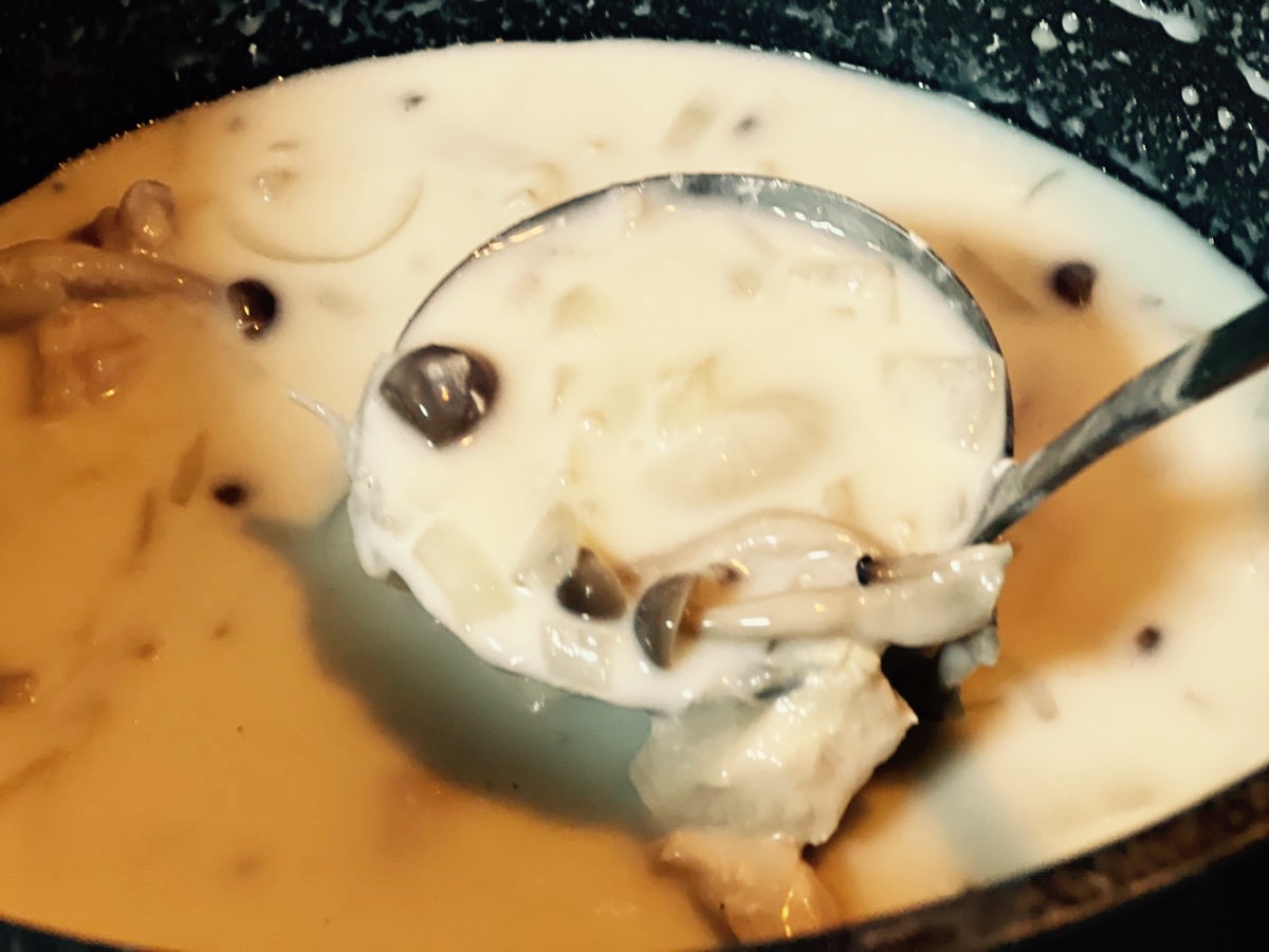 シチューには鶏肉と玉ねぎとしめじを入れてます。