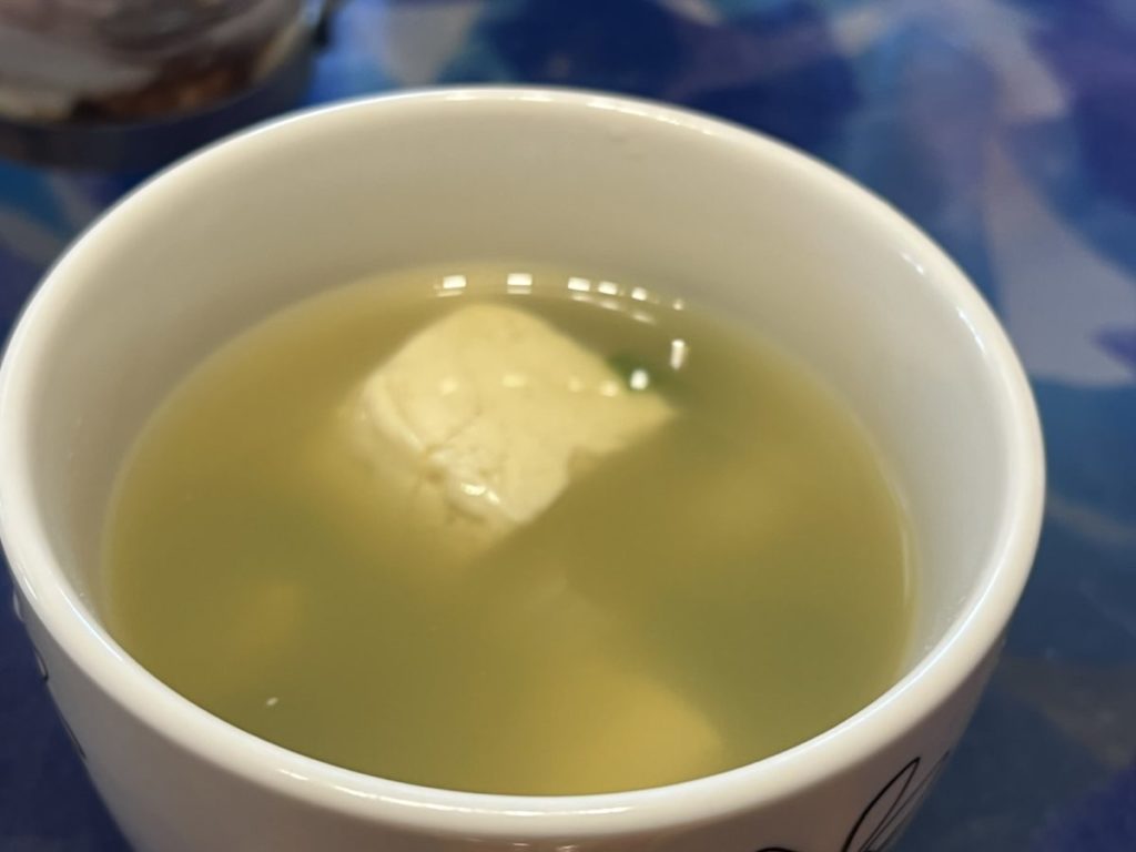豆腐が入った味噌汁、あー深ネギ体力なくは沈んでます。いや煮すぎたせいだなぁ。